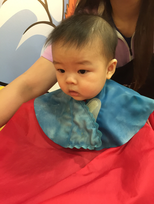 So I can eat in peace! Hehe! Right after lunch, brought baby to cut hair!